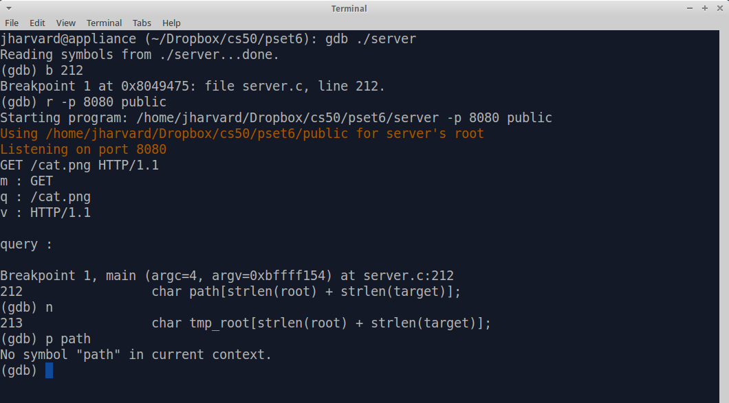 그런데 이 문제의 경우에는 위의 두 가지로도 해결이 되지 않았다. 좀더 검색을 해보니 GDB 자체에서 배열의 크기를 변수로 지정했을 경우 배열의 값을 제대로 출력하지 못하는 문제가 있는 것 같았다. VLA(Vaiable Length Array) 문제라고 하던데 GDB 7.8에서는 아래 인용문처럼 문제가 해결되었다고 한다. 하지만 CS50 Appliance는 7.7을 사용하고 있어서 결국 제대로 된 결과는 볼 수 없었다.