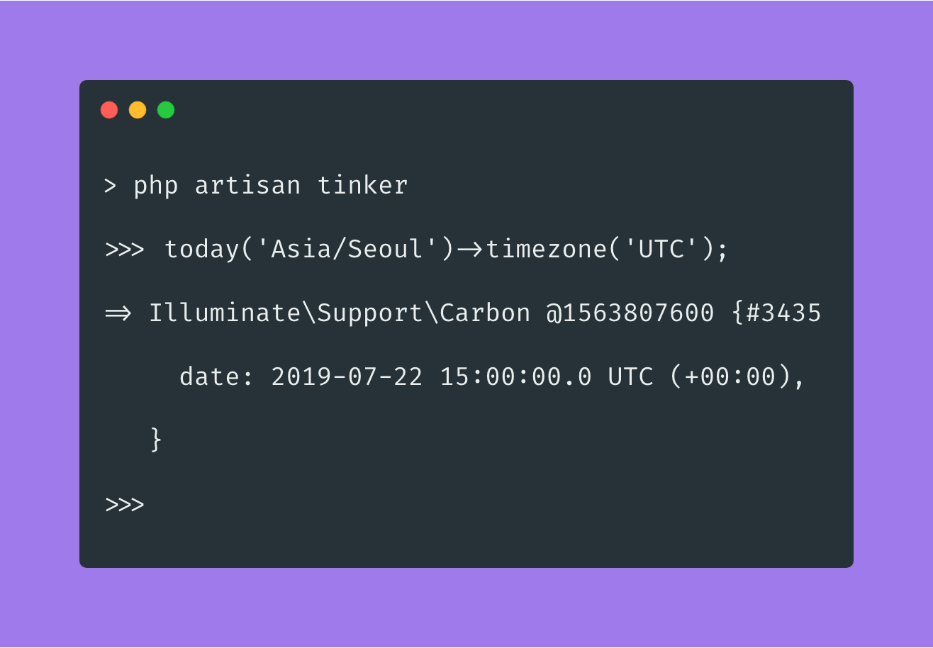>>> Carbon\Carbon::now()->timezone('Asia/Seoul')->startOfDay()->addYear(3);
