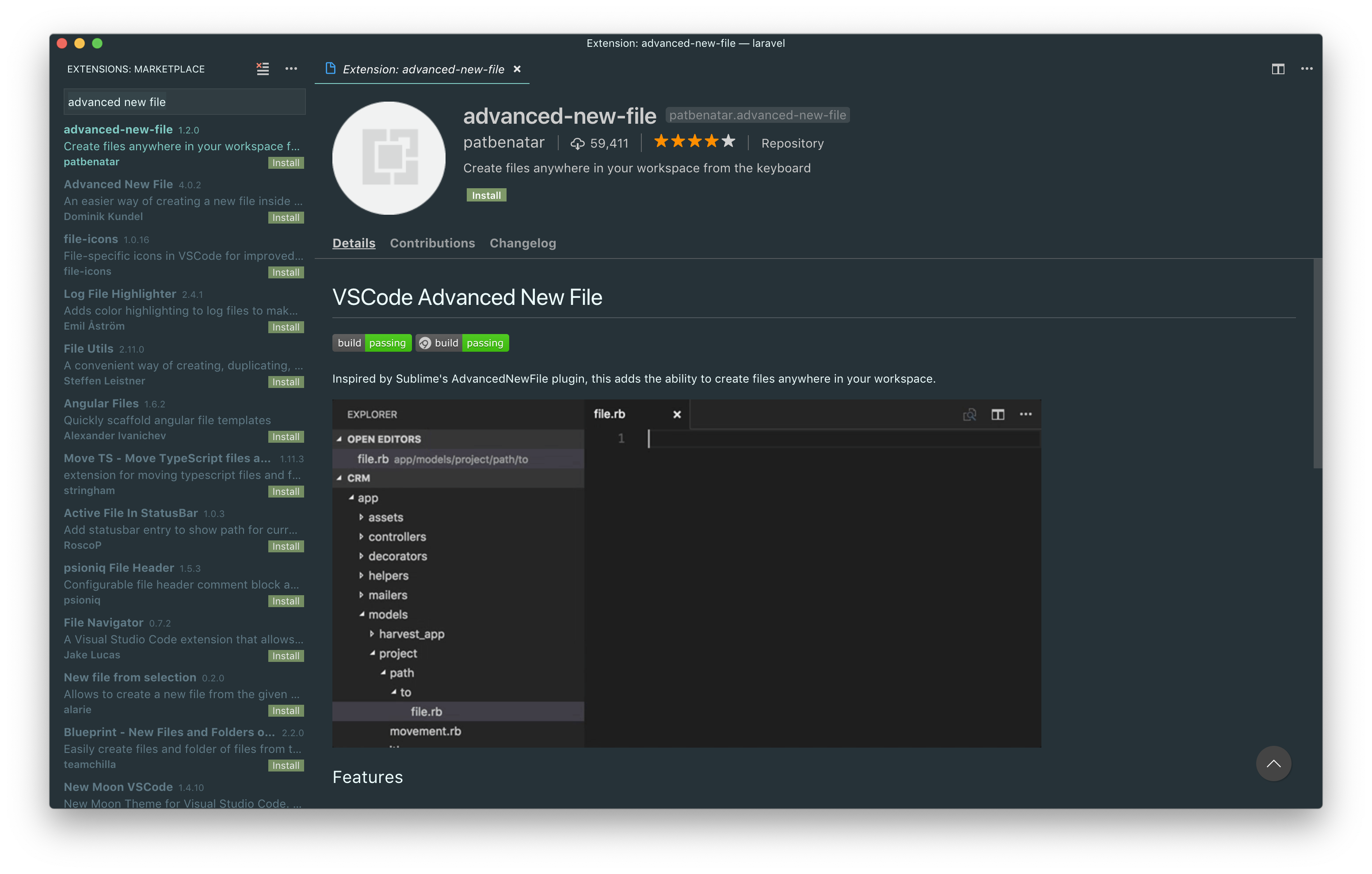 하지만 여기서 만족이 되지 않는다면 advanced new file 확장 프로그램을 설치해 보자.