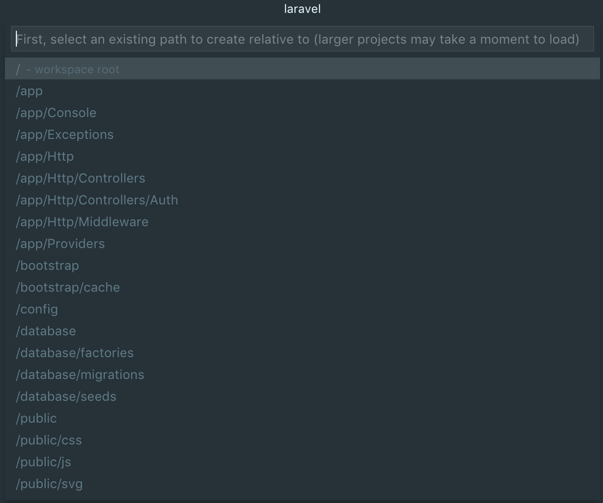 첫 대화상자에서는 파일을 생성할 위치만 지정한다. Controller 아래에 생성하고 싶다면 /app/Http/Controllers를 선택하면 된다.