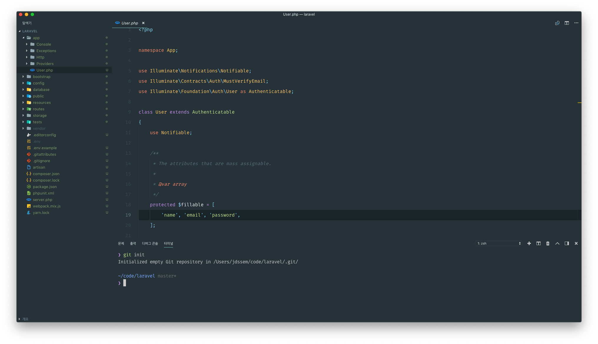 Visual Studio Code에는 Git 관련 기능이 이미 내장되어 있다. 터미널에서 Git init로 repository를 초기화 하면 왼쪽 사이드바 파일의 색깔이 아래와 같이 변한다.